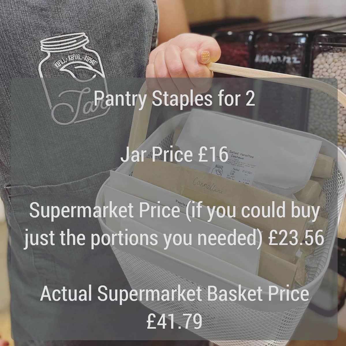 Quick answer: No! (if you compare our prices with sustainable equivalents).... And Yes (if you don’t…but is someone else paying the cost?). Check out our price matches! Long answer: The answer to this is complicated. We won’t ever be able to price match some of the big supermarket chains on the cheapest staples, with their huge global supply chains and massive bulk buying power. However, when food is very cheap, it is usually because someone else is paying the price along the way - either through unfair wages, or the environmental impact of intensive farming practices. It is really important to remember that not everyone has the same luxury of choice though - and everyone can only make the best choice for themselves and their families if they need to choose these options, particularly after the incredibly tough year we've just had. Our mission at Jar is to make sustainable options available and affordable to as many people as we can. We opened Jar because we wanted Plymouth to have more environmentally friendly ways to shop, with the confidence that everything is sourced ethically. Reducing packaging waste and also reducing food waste - by buying just as much as you need - have a positive impact on the environment. Buying organic makes a huge difference too, and that is why we choose to stock organic products wherever we can. We want shopping with us to be really affordable so that it is accessible to as many people as possible. Supermarkets sometimes inflate the price of sustainable and organic products, making them less affordable. We made the decision to prioritise affordability over profit, and once we cover bills for the shop and pay our team fairly we aren’t under pressure to make profits for shareholders in the same way the supermarkets are. We were really excited to find out that using this approach, even though we are a very small business, it is possible to stock organic products at prices which are often the same or lower than you would find at the supermarket. There will be some items where our price will be higher, but overall the average will be the same or less. The best way to show this is with real examples so we will start with this week’s Jar Pantry Box. The Pantry Box is designed to go alongside our Good Earth Growers Organic Veg boxes, and to give a good range of staples to make meals for two people. The fact we can weigh the right quantities for meals for two means that we can have a lot of variety in the box. Plus some luxury chocolate - everyone needs chocolate! Our box is £16 (and the current contents would cost £17.02 if you came in and weighed all the items out individually yourself). The equivalent price for the Supermarkets would be £23.56. That is the direct weight for weight comparison if you could weigh out just what you needed. In reality you can only buy larger quantities from the supermarket, so the basket cost to give the same variety of staples would be £41.79. We compared the closest (Organic) supermarket products we could find, mostly Sainsbury’s and a few from Ocado where Sainsbury’s didn’t have an equivalent. Here is a summary of the comparison table (price checked on 02/07/21). …...So in summary, we are really proud to say shopping with us plastic free, for sustainable organic foods, is cheaper than shopping at the Supermarket. We want our thinking behind the choice of products we sell at Jar to be transparent and visible to everyone that shops with us so always feel free to ask us questions either in the shop or in the comments 🙂